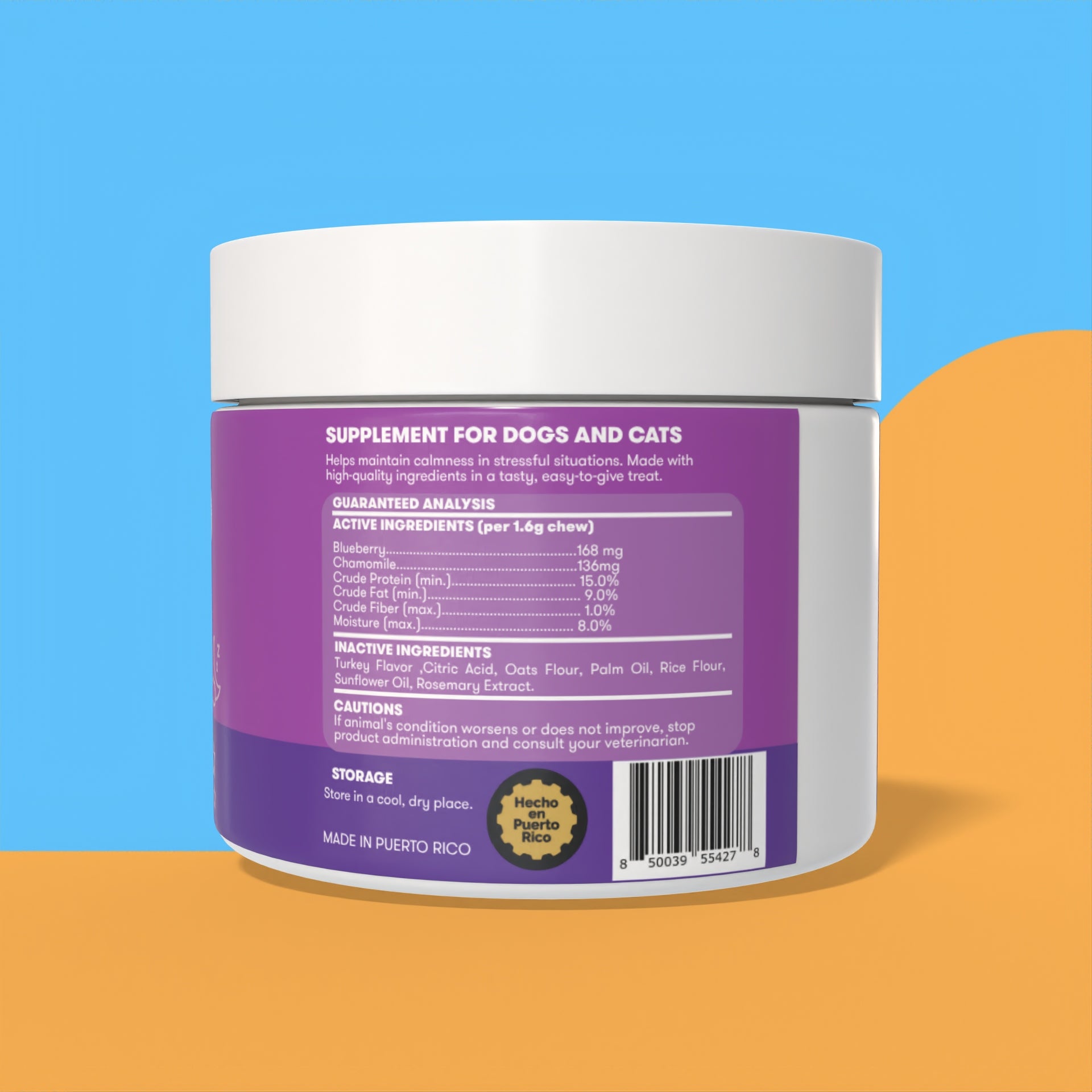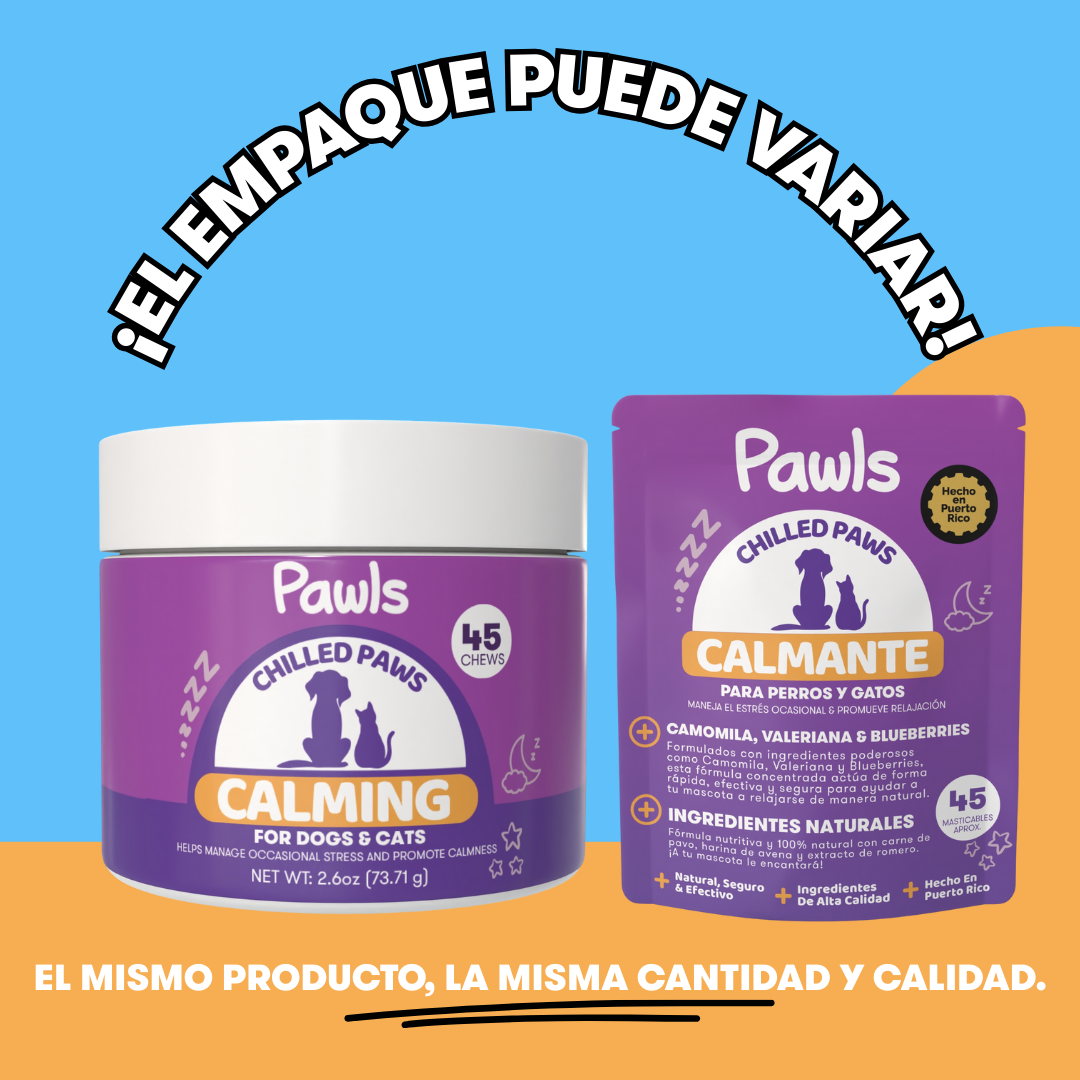 Como los humanos, las mascotas son propensas a sufrir de ansiedad y estrés cuando están bajo circunstancias diferentes o en un lugar nuevo. Chilled Paws es el suplemento perfecto para calmar caninos especialmente formulado para balancear comportamiento y aliviar estrés, ansiedad e hiperactividad. Ayuda también a calmar durante tormentas de trueno y regula el comportamiento agresivo promoviendo comodidad y relajación.
